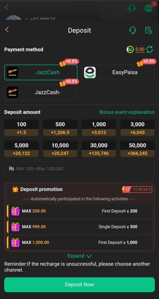 | EasyPaisa | Yes. | Instant – 5 minutes |